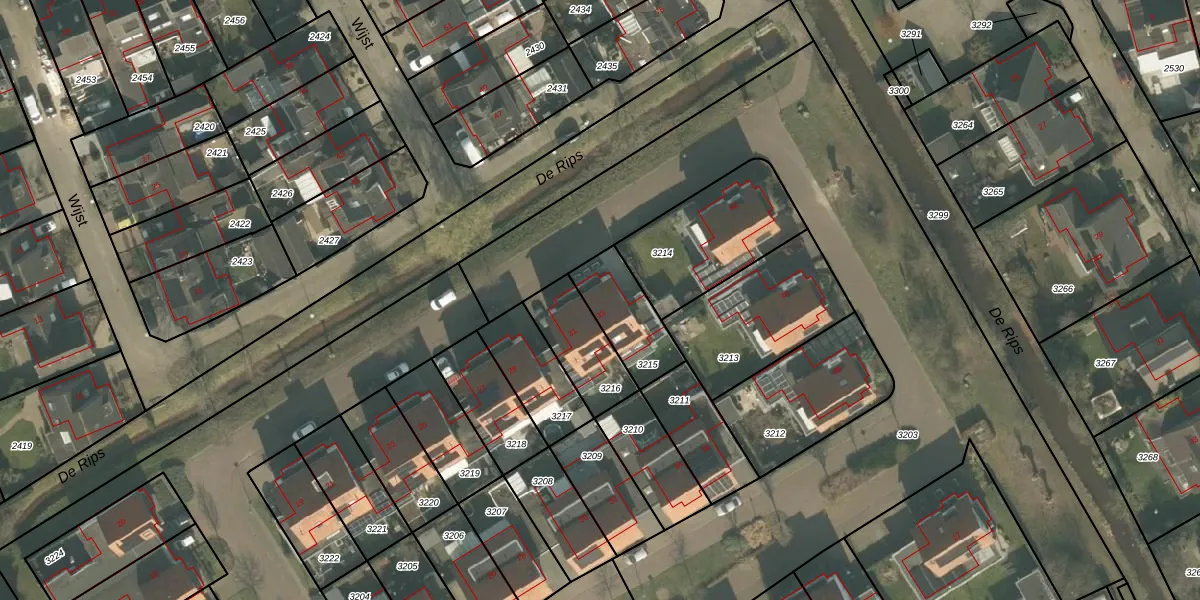 Gebruik de zoekbalk of klik op een perceel voor informatie over de adressen binnen dit perceel.
