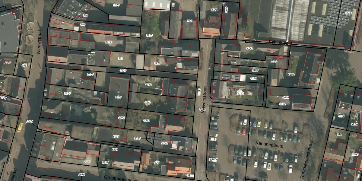 Gebruik de zoekbalk of klik op een perceel voor informatie over de adressen binnen dit perceel.