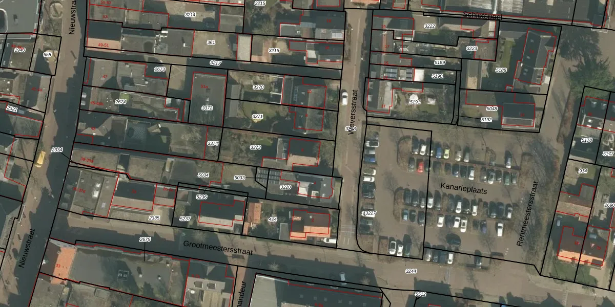 Gebruik de zoekbalk of klik op een perceel voor informatie over de adressen binnen dit perceel.