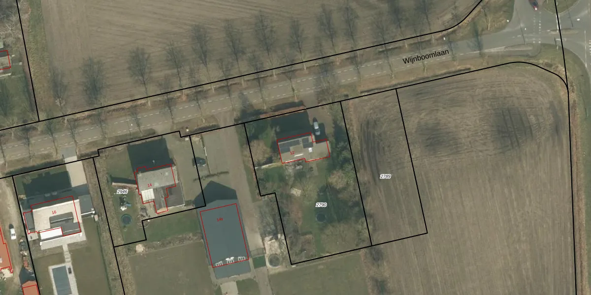 Wijnboomlaan 12 is gelegen op kadastraal perceel GMT00H2790. Deze kadastrale aanduiding is uniek en wordt gebruikt door het Kadaster om eigendomsrechten en andere zakelijke rechten vast te leggen. Het perceel maakt onderdeel uit van de kadastrale gemeente Gemert.