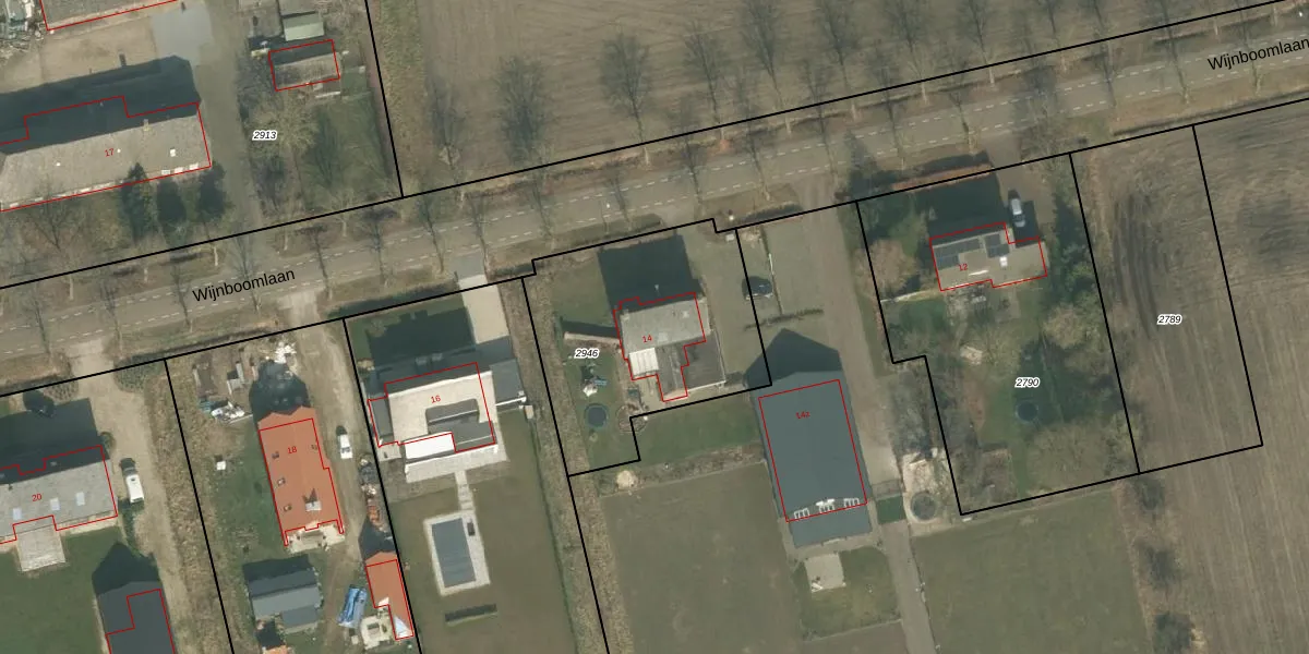Het perceel waarop Wijnboomlaan 14 staat heeft een oppervlakte van 960 m². Dit is een groot perceel. De perceeloppervlakte wordt geregistreerd door het Kadaster. Gedetailleerde informatie over de maten van dit perceel kunt u vinden in het rapport Kadastrale kaart met maatvoering van Wijnboomlaan 14.