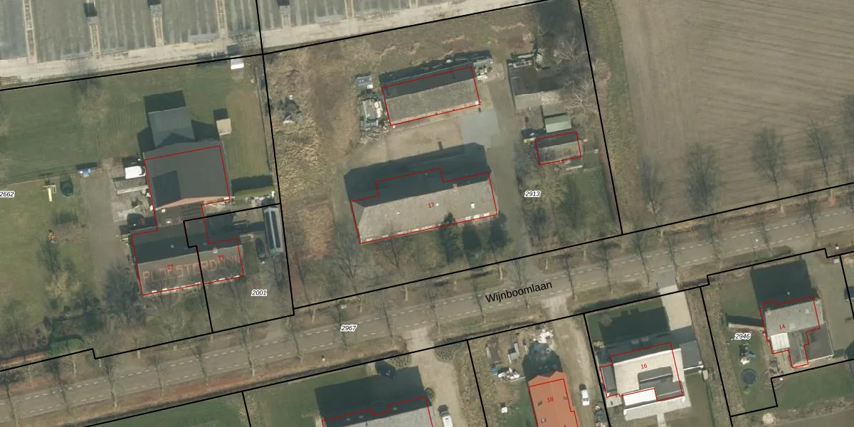 Het perceel waarop Wijnboomlaan 17 staat heeft een oppervlakte van 4510 m². Dit is een zeer groot perceel. De perceeloppervlakte wordt geregistreerd door het Kadaster. Gedetailleerde informatie over de maten van dit perceel kunt u vinden in het rapport Kadastrale kaart met maatvoering van Wijnboomlaan 17.