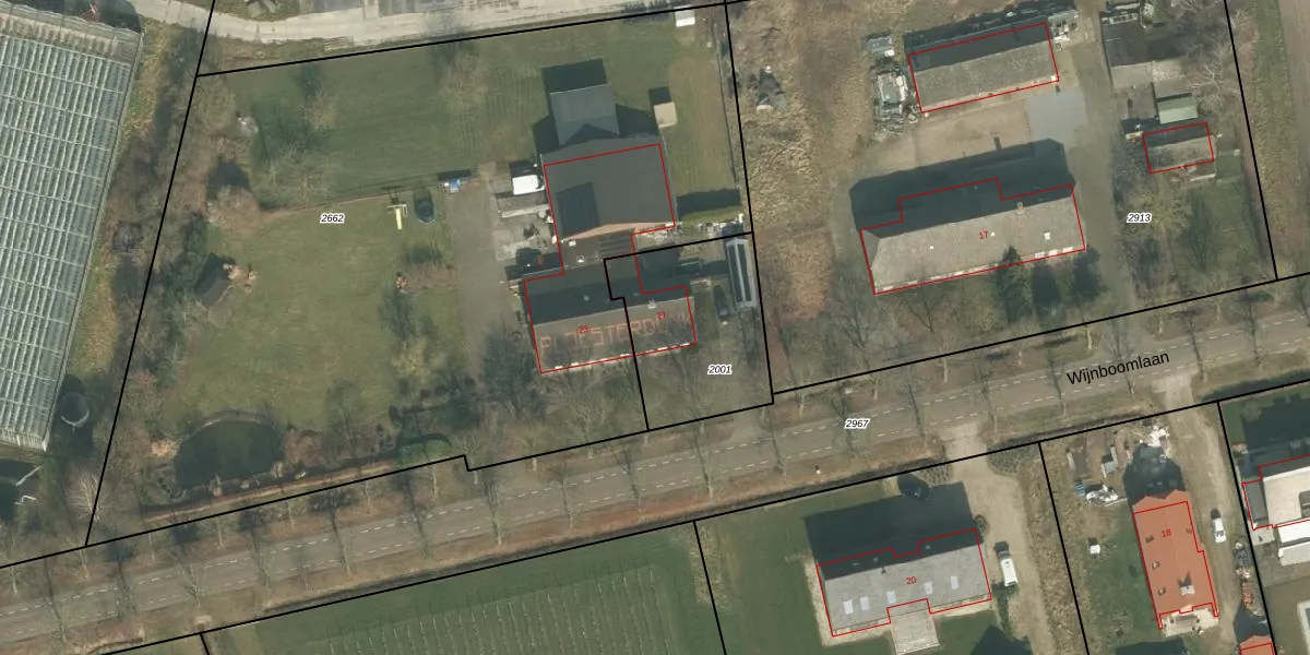 Wijnboomlaan 21 is gelegen op kadastraal perceel GMT00H2001. Deze kadastrale aanduiding is uniek en wordt gebruikt door het Kadaster om eigendomsrechten en andere zakelijke rechten vast te leggen. Het perceel maakt onderdeel uit van de kadastrale gemeente Gemert.