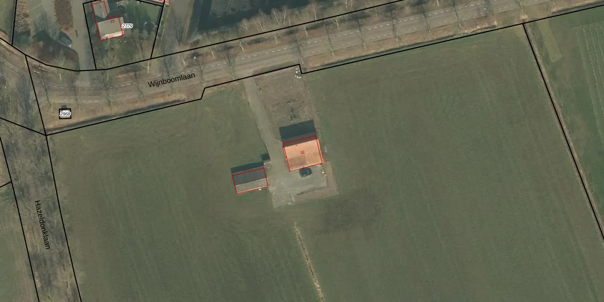 Wijnboomlaan 32 is gelegen op kadastraal perceel GMT00H2054. Deze kadastrale aanduiding is uniek en wordt gebruikt door het Kadaster om eigendomsrechten en andere zakelijke rechten vast te leggen. Het perceel maakt onderdeel uit van de kadastrale gemeente Gemert.