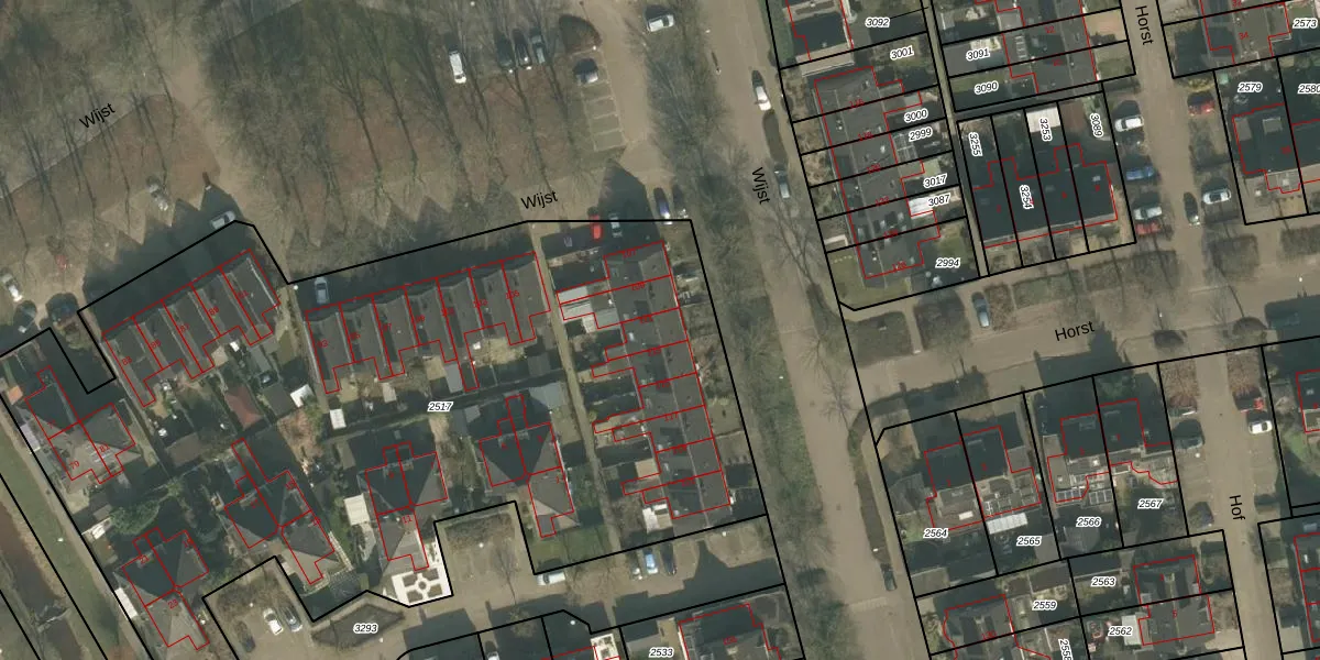 Het perceel waarop Wijst 111 staat heeft een oppervlakte van 5175 m². Dit is een zeer groot perceel. De perceeloppervlakte wordt geregistreerd door het Kadaster. Gedetailleerde informatie over de maten van dit perceel kunt u vinden in het rapport Kadastrale kaart met maatvoering van Wijst 111.