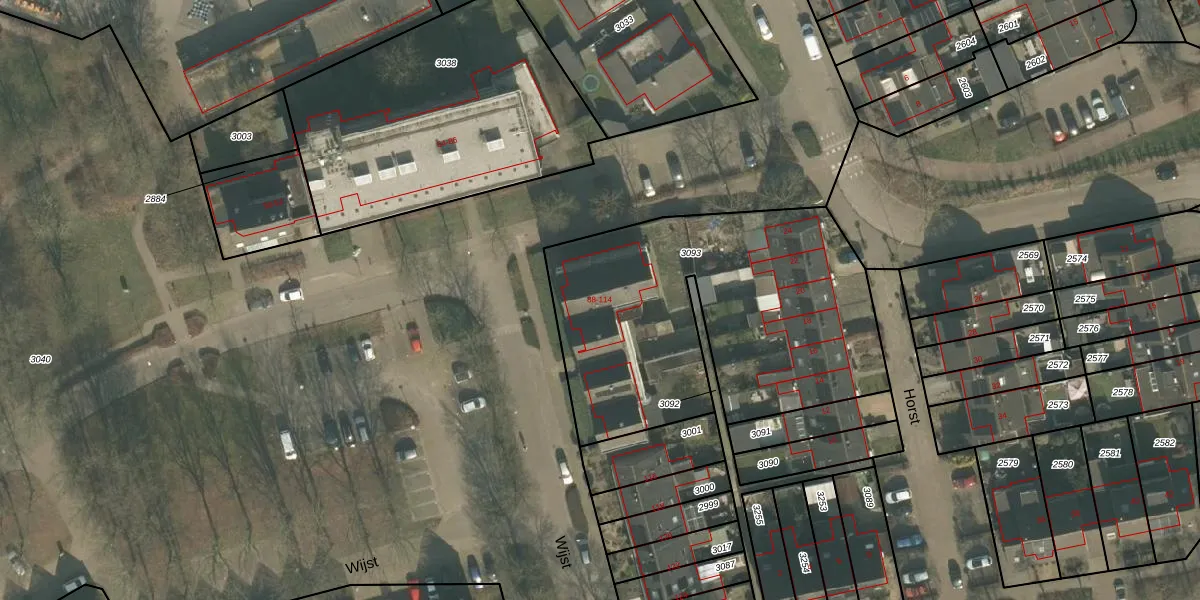 Het perceel waarop Wijst 112 staat heeft een oppervlakte van 1694 m². Dit is een zeer groot perceel. De perceeloppervlakte wordt geregistreerd door het Kadaster. Gedetailleerde informatie over de maten van dit perceel kunt u vinden in het rapport Kadastrale kaart met maatvoering van Wijst 112.