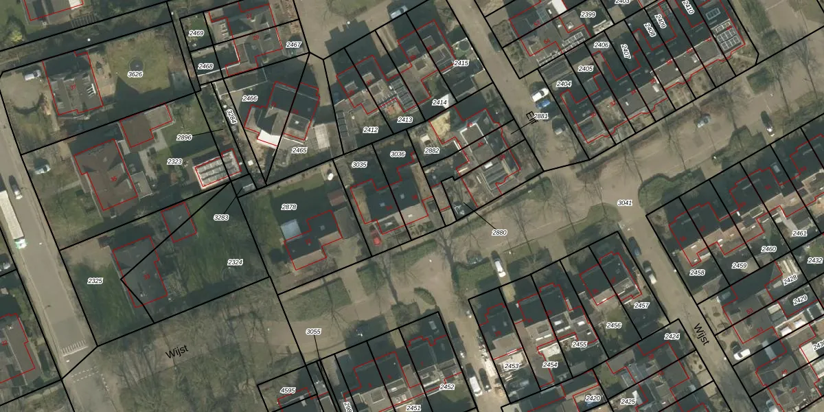 Het perceel waarop Wijst 26 staat heeft een oppervlakte van 229 m². Dit is een middelgroot perceel. De perceeloppervlakte wordt geregistreerd door het Kadaster. Gedetailleerde informatie over de maten van dit perceel kunt u vinden in het rapport Kadastrale kaart met maatvoering van Wijst 26.