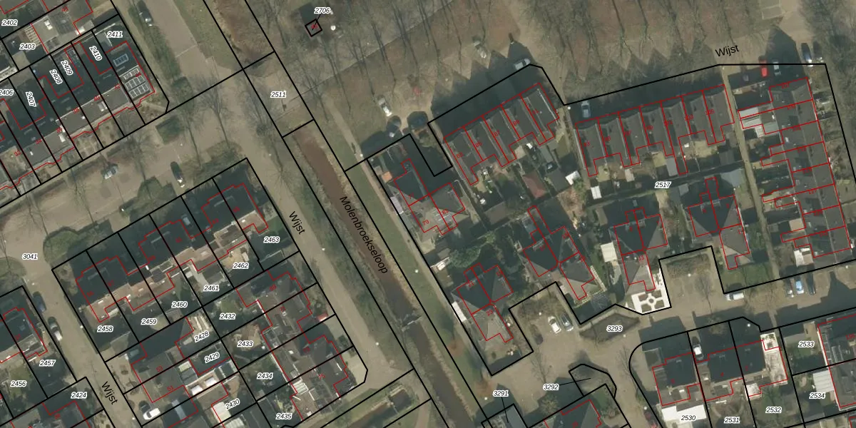 Het perceel waarop Wijst 79 staat heeft een oppervlakte van 5175 m². Dit is een zeer groot perceel. De perceeloppervlakte wordt geregistreerd door het Kadaster. Gedetailleerde informatie over de maten van dit perceel kunt u vinden in het rapport Kadastrale kaart met maatvoering van Wijst 79.