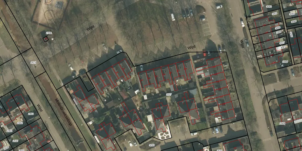 Het perceel waarop Wijst 95 staat heeft een oppervlakte van 5175 m². Dit is een zeer groot perceel. De perceeloppervlakte wordt geregistreerd door het Kadaster. Gedetailleerde informatie over de maten van dit perceel kunt u vinden in het rapport Kadastrale kaart met maatvoering van Wijst 95.