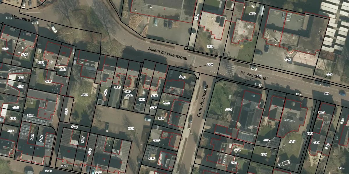 Gebruik de zoekbalk of klik op een perceel voor informatie over de adressen binnen dit perceel.