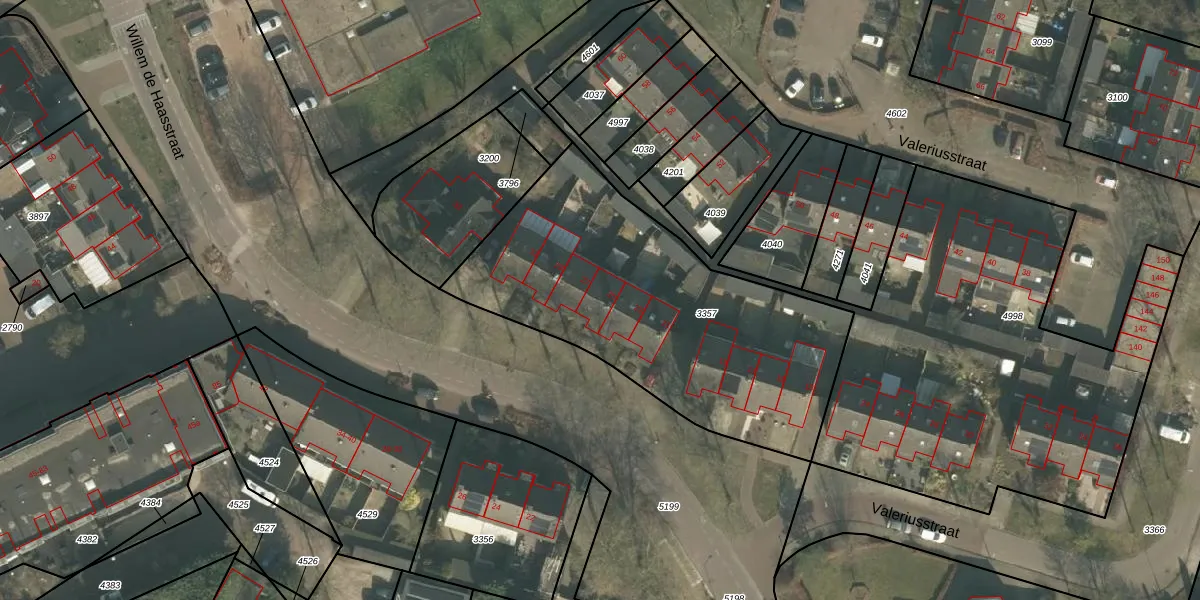 Het perceel waarop Willem de Haasstraat 25 staat heeft een oppervlakte van 1615 m². Dit is een zeer groot perceel. De perceeloppervlakte wordt geregistreerd door het Kadaster. Gedetailleerde informatie over de maten van dit perceel kunt u vinden in het rapport Kadastrale kaart met maatvoering van Willem de Haasstraat 25.
