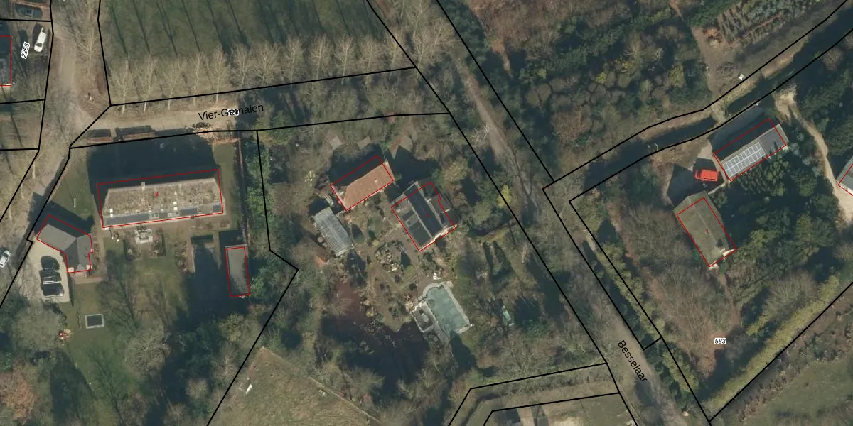 Het perceel waarop Besselaar 4 staat heeft een oppervlakte van 7340 m². Dit is een zeer groot perceel. De perceeloppervlakte wordt geregistreerd door het Kadaster. Gedetailleerde informatie over de maten van dit perceel kunt u vinden in het rapport Kadastrale kaart met maatvoering van Besselaar 4.