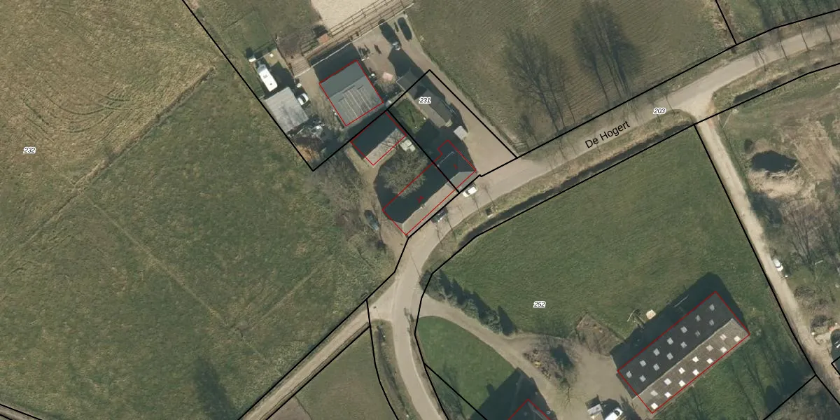 Het perceel waarop De Hogert 2-A staat heeft een oppervlakte van 1,4 ha. Dit is een zeer groot perceel. De perceeloppervlakte wordt geregistreerd door het Kadaster. Gedetailleerde informatie over de maten van dit perceel kunt u vinden in het rapport Kadastrale kaart met maatvoering van De Hogert 2-A.