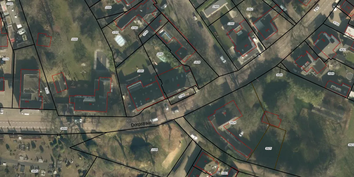 Het perceel waarop Dorpstraat 22 staat heeft een oppervlakte van 515 m². Dit is een groot perceel. De perceeloppervlakte wordt geregistreerd door het Kadaster. Gedetailleerde informatie over de maten van dit perceel kunt u vinden in het rapport Kadastrale kaart met maatvoering van Dorpstraat 22.