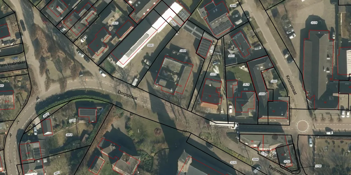 Het perceel waarop Dorpstraat 40 staat heeft een oppervlakte van 1078 m². Dit is een zeer groot perceel. De perceeloppervlakte wordt geregistreerd door het Kadaster. Gedetailleerde informatie over de maten van dit perceel kunt u vinden in het rapport Kadastrale kaart met maatvoering van Dorpstraat 40.