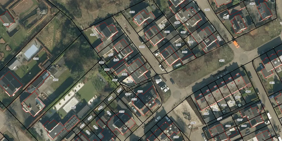 Het perceel waarop Halm 1 staat heeft een oppervlakte van 213 m². Dit is een middelgroot perceel. De perceeloppervlakte wordt geregistreerd door het Kadaster. Gedetailleerde informatie over de maten van dit perceel kunt u vinden in het rapport Kadastrale kaart met maatvoering van Halm 1.