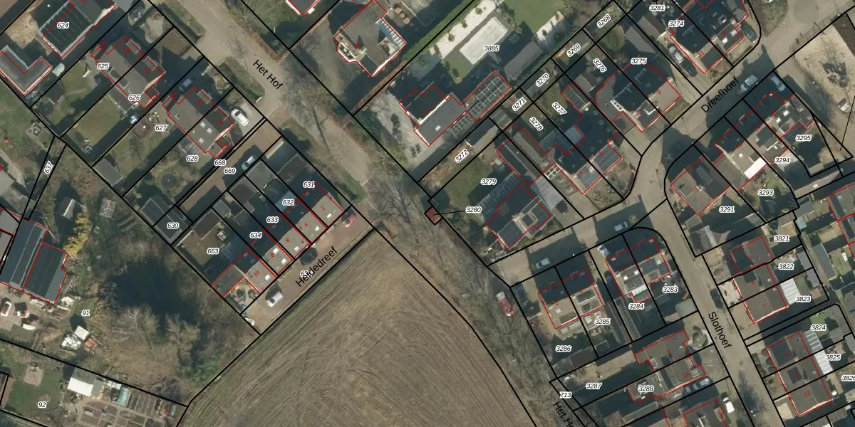 Het perceel waarop Het Hof 1-D staat heeft een oppervlakte van 9 m². Dit is een klein perceel. De perceeloppervlakte wordt geregistreerd door het Kadaster. Gedetailleerde informatie over de maten van dit perceel kunt u vinden in het rapport Kadastrale kaart met maatvoering van Het Hof 1-D.