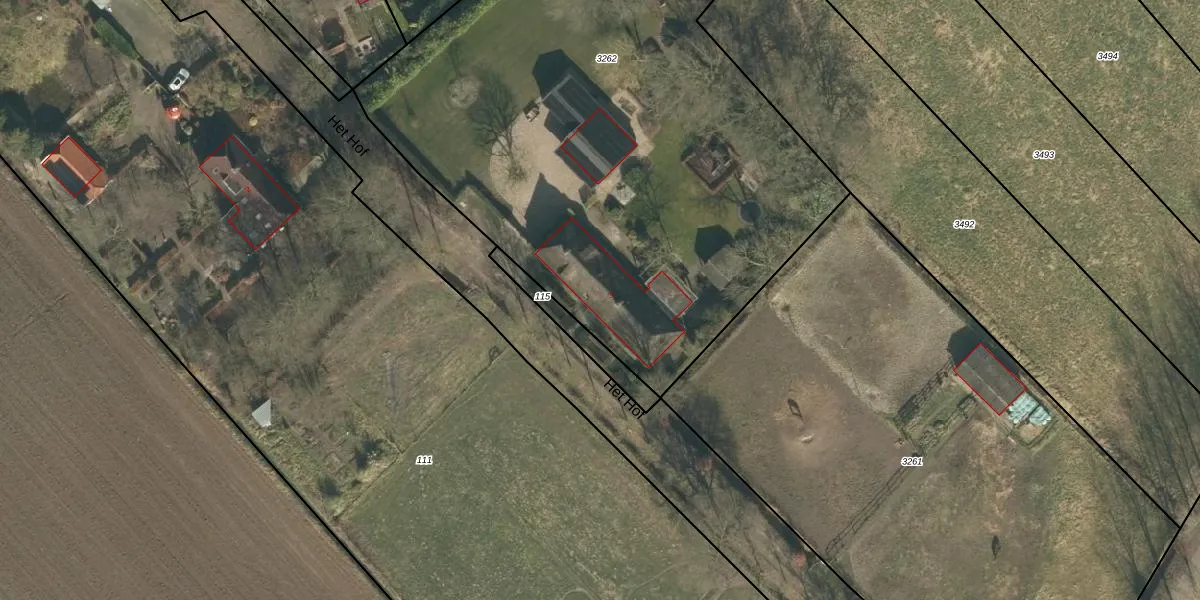 Het perceel waarop Het Hof 3 staat heeft een oppervlakte van 3730 m². Dit is een zeer groot perceel. De perceeloppervlakte wordt geregistreerd door het Kadaster. Gedetailleerde informatie over de maten van dit perceel kunt u vinden in het rapport Kadastrale kaart met maatvoering van Het Hof 3.
