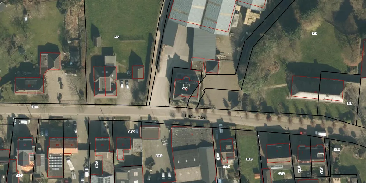 Lariestraat 16 is gelegen op kadastraal perceel MCG00O298. Deze kadastrale aanduiding is uniek en wordt gebruikt door het Kadaster om eigendomsrechten en andere zakelijke rechten vast te leggen. Het perceel maakt onderdeel uit van de kadastrale gemeente Sint Michielsgestel.
