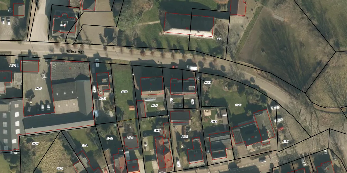 Lariestraat 3 is gelegen op kadastraal perceel MCG00D1581. Deze kadastrale aanduiding is uniek en wordt gebruikt door het Kadaster om eigendomsrechten en andere zakelijke rechten vast te leggen. Het perceel maakt onderdeel uit van de kadastrale gemeente Sint Michielsgestel.