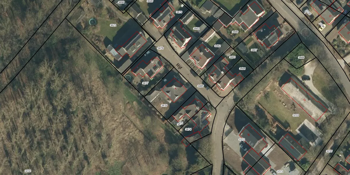 Het perceel waarop Rijf 9 staat heeft een oppervlakte van 449 m². Dit is een groot perceel. De perceeloppervlakte wordt geregistreerd door het Kadaster. Gedetailleerde informatie over de maten van dit perceel kunt u vinden in het rapport Kadastrale kaart met maatvoering van Rijf 9.