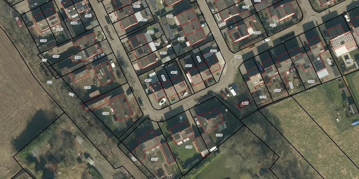 Het perceel waarop Slothoef 19 staat heeft een oppervlakte van 153 m². Dit is een middelgroot perceel. De perceeloppervlakte wordt geregistreerd door het Kadaster. Gedetailleerde informatie over de maten van dit perceel kunt u vinden in het rapport Kadastrale kaart met maatvoering van Slothoef 19.