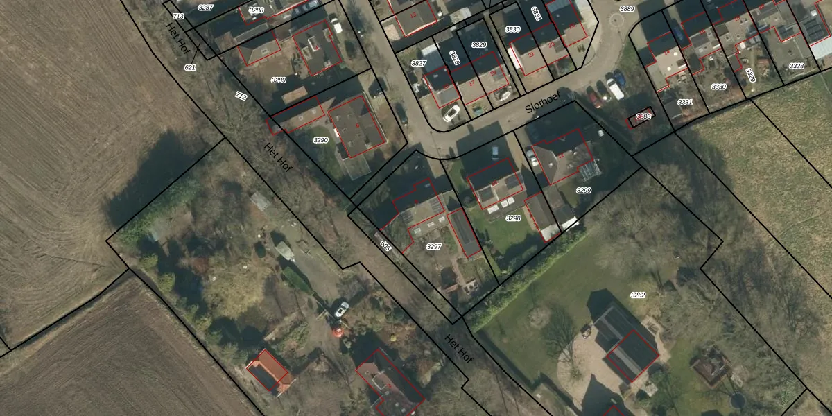 Het perceel waarop Slothoef 8 staat heeft een oppervlakte van 646 m². Dit is een groot perceel. De perceeloppervlakte wordt geregistreerd door het Kadaster. Gedetailleerde informatie over de maten van dit perceel kunt u vinden in het rapport Kadastrale kaart met maatvoering van Slothoef 8.