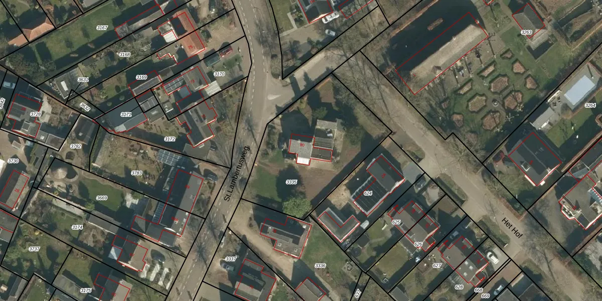 St.Lambertusweg 80 is gelegen op kadastraal perceel MCG00D3335. Deze kadastrale aanduiding is uniek en wordt gebruikt door het Kadaster om eigendomsrechten en andere zakelijke rechten vast te leggen. Het perceel maakt onderdeel uit van de kadastrale gemeente Sint Michielsgestel.