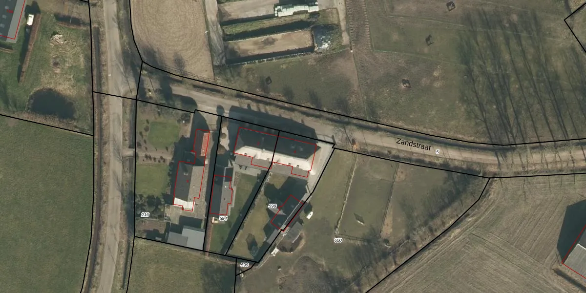 Zandstraat 4 is gelegen op kadastraal perceel MCG00P598. Deze kadastrale aanduiding is uniek en wordt gebruikt door het Kadaster om eigendomsrechten en andere zakelijke rechten vast te leggen. Het perceel maakt onderdeel uit van de kadastrale gemeente Sint Michielsgestel.