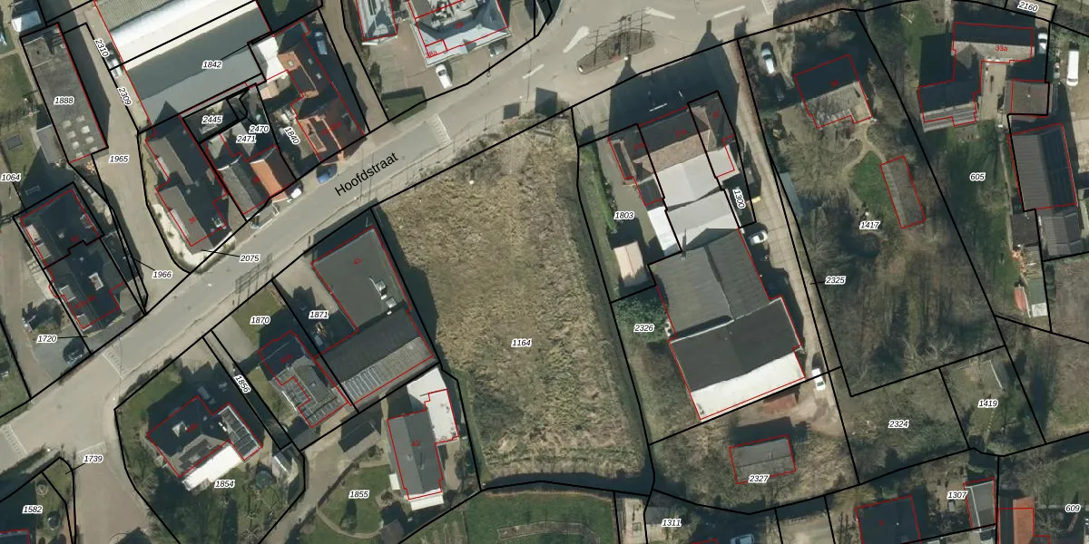 Het perceel waarop Hoofdstraat 39-D staat heeft een oppervlakte van 2142 m². Dit is een zeer groot perceel. De perceeloppervlakte wordt geregistreerd door het Kadaster. Gedetailleerde informatie over de maten van dit perceel kunt u vinden in het rapport Kadastrale kaart met maatvoering van Hoofdstraat 39-D.