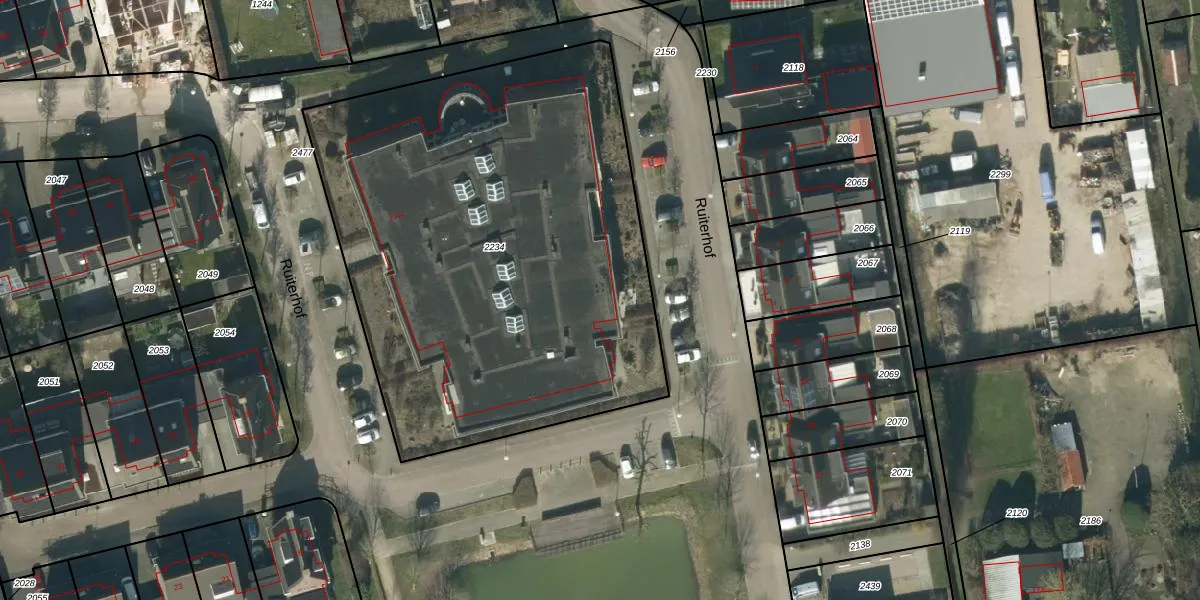 Het perceel waarop Ruiterhof 8 staat heeft een oppervlakte van 3023 m². Dit is een zeer groot perceel. De perceeloppervlakte wordt geregistreerd door het Kadaster. Gedetailleerde informatie over de maten van dit perceel kunt u vinden in het rapport Kadastrale kaart met maatvoering van Ruiterhof 8.
