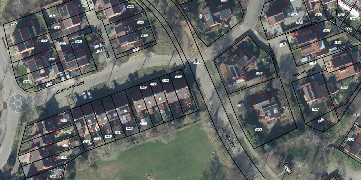 Gebruik de zoekbalk of klik op een perceel voor informatie over de adressen binnen dit perceel.