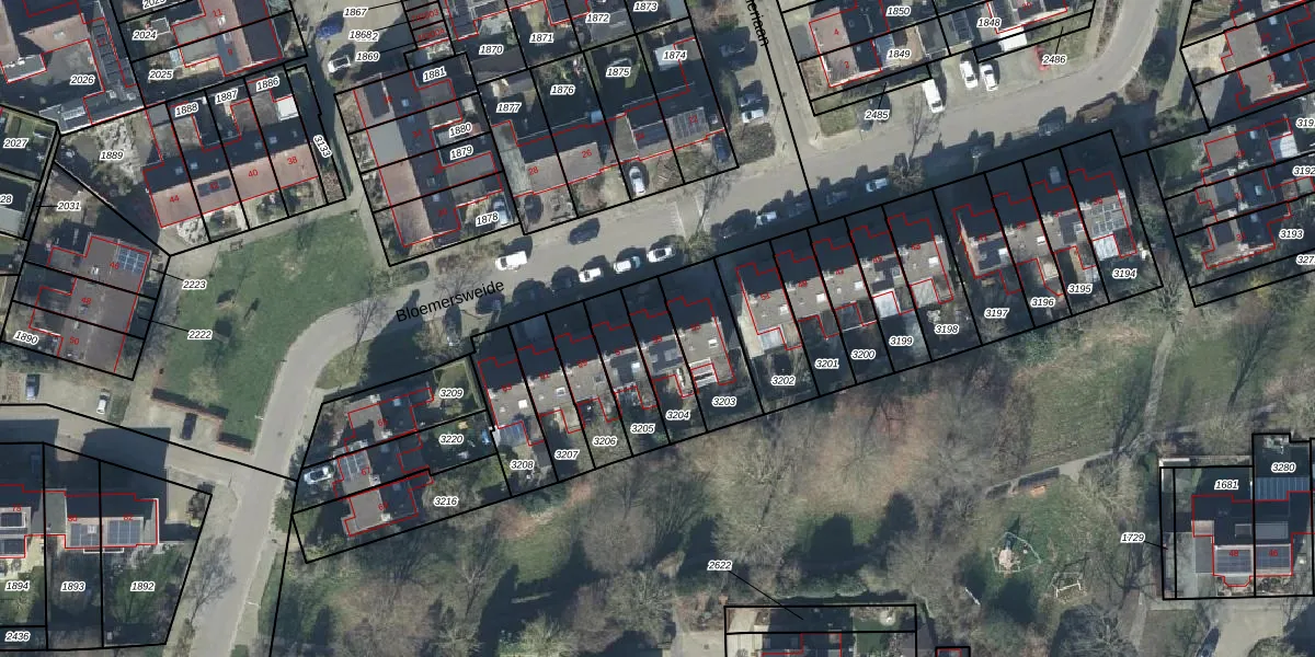 Gebruik de zoekbalk of klik op een perceel voor informatie over de adressen binnen dit perceel.