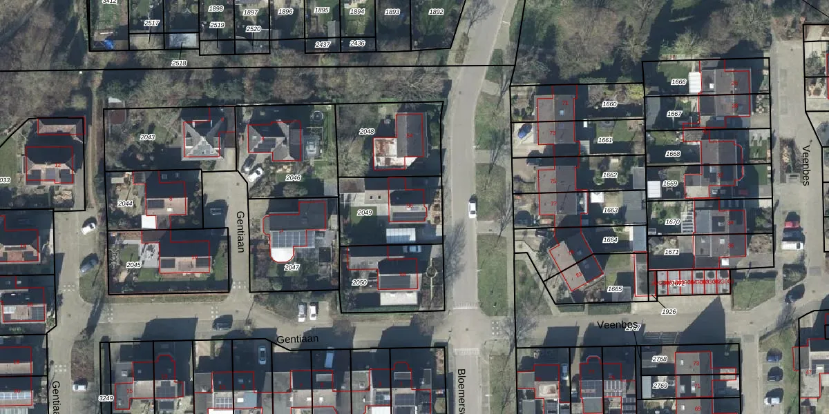 Gebruik de zoekbalk of klik op een perceel voor informatie over de adressen binnen dit perceel.