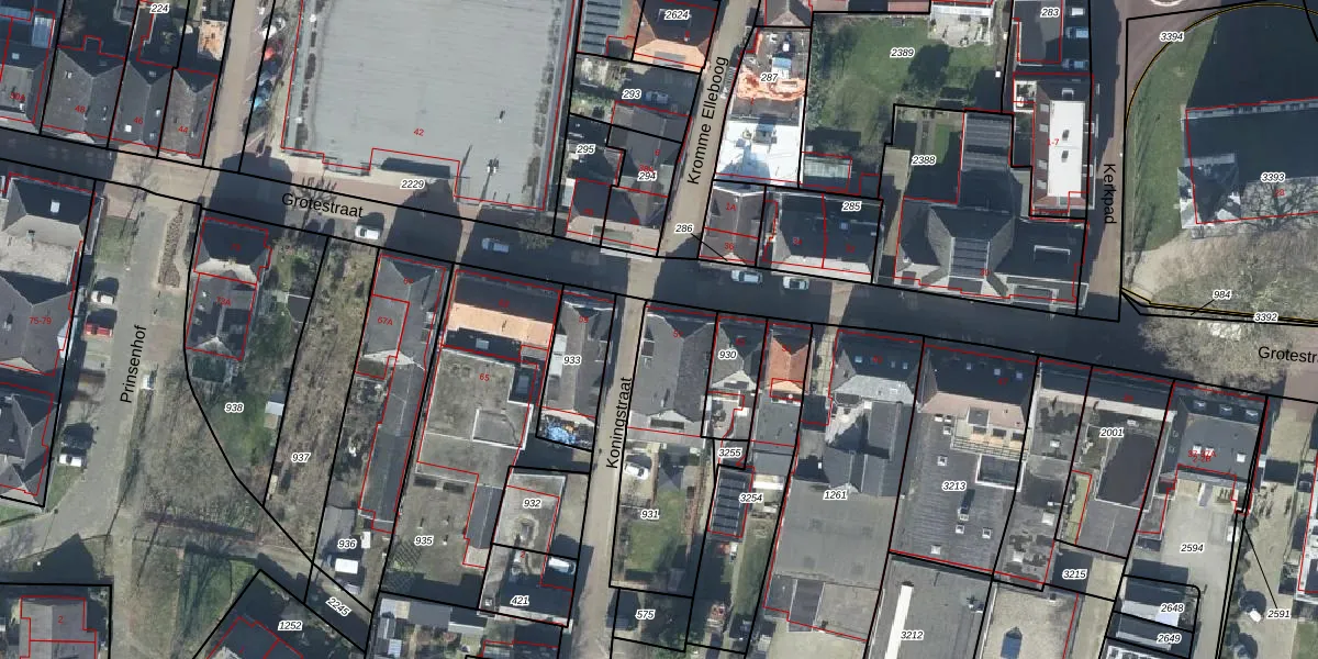 Het perceel waarop Grotestraat 57 staat heeft een oppervlakte van 555 m². Dit is een groot perceel. De perceeloppervlakte wordt geregistreerd door het Kadaster. Gedetailleerde informatie over de maten van dit perceel kunt u vinden in het rapport Kadastrale kaart met maatvoering van Grotestraat 57.