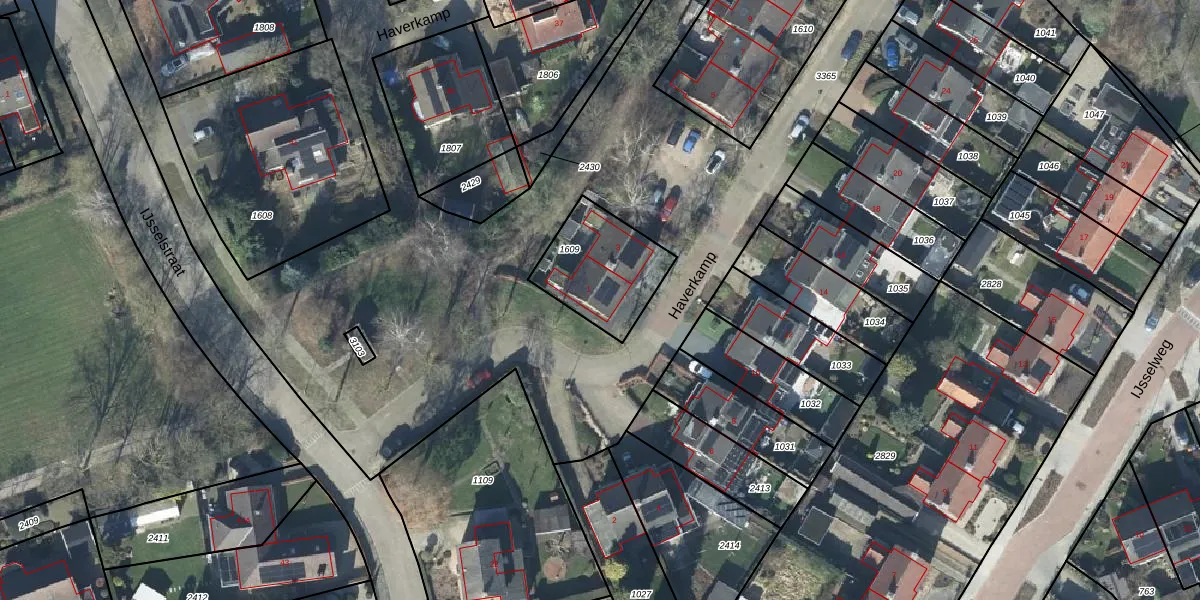 Het perceel waarop Haverkamp 1 staat heeft een oppervlakte van 325 m². Dit is een groot perceel. De perceeloppervlakte wordt geregistreerd door het Kadaster. Gedetailleerde informatie over de maten van dit perceel kunt u vinden in het rapport Kadastrale kaart met maatvoering van Haverkamp 1.