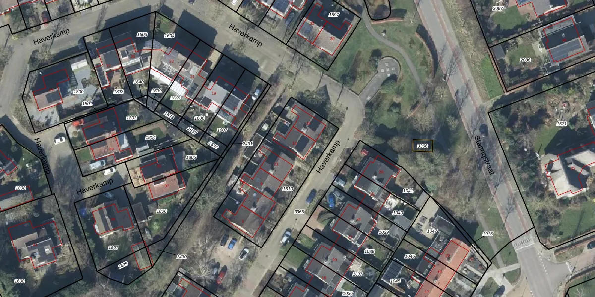 Het perceel waarop Haverkamp 13 staat heeft een oppervlakte van 922 m². Dit is een groot perceel. De perceeloppervlakte wordt geregistreerd door het Kadaster. Gedetailleerde informatie over de maten van dit perceel kunt u vinden in het rapport Kadastrale kaart met maatvoering van Haverkamp 13.