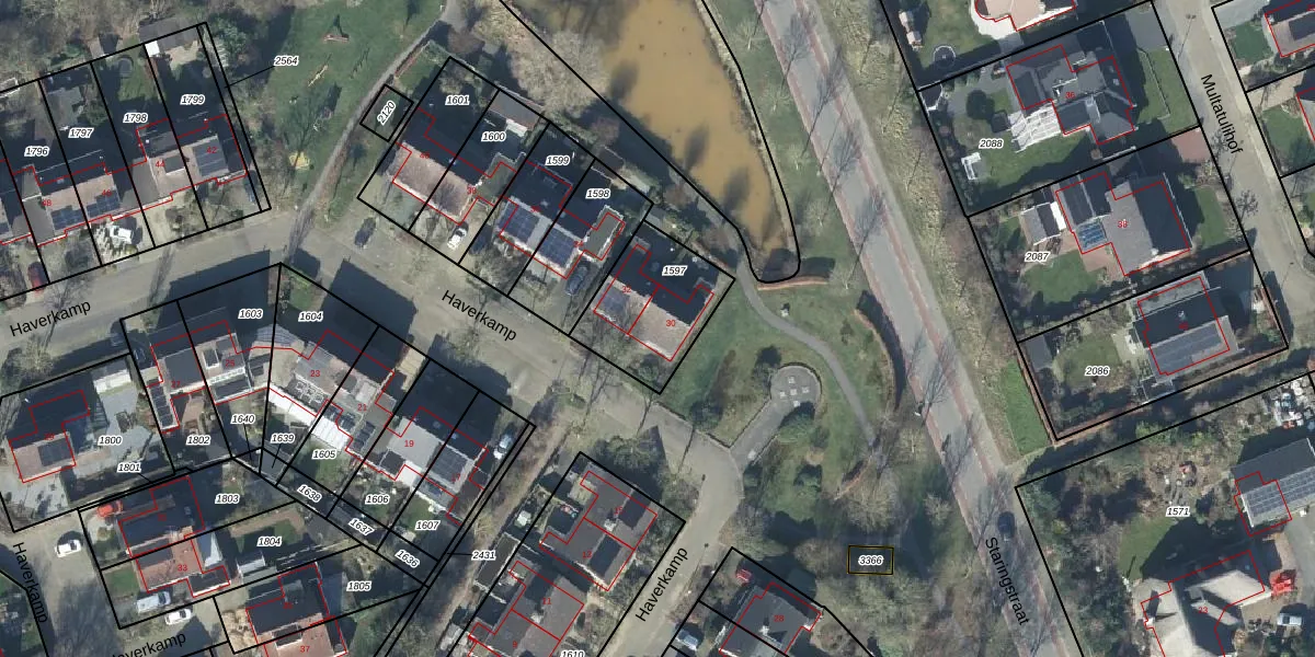 Het perceel waarop Haverkamp 30 staat heeft een oppervlakte van 352 m². Dit is een groot perceel. De perceeloppervlakte wordt geregistreerd door het Kadaster. Gedetailleerde informatie over de maten van dit perceel kunt u vinden in het rapport Kadastrale kaart met maatvoering van Haverkamp 30.