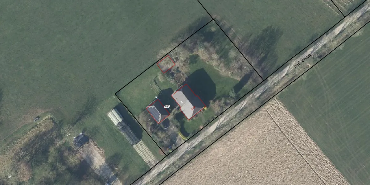 Het perceel waarop Hulseweg 2 staat heeft een oppervlakte van 2850 m². Dit is een zeer groot perceel. De perceeloppervlakte wordt geregistreerd door het Kadaster. Gedetailleerde informatie over de maten van dit perceel kunt u vinden in het rapport Kadastrale kaart met maatvoering van Hulseweg 2.