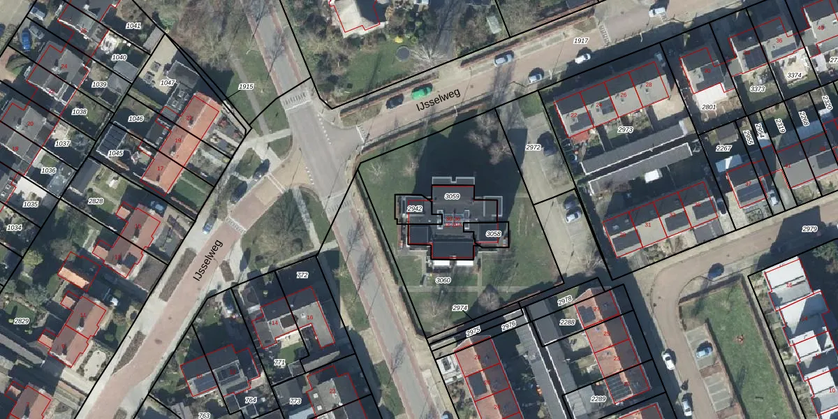 Het perceel waarop IJsselweg 18 staat heeft een oppervlakte van 65 m². Dit is een klein perceel. De perceeloppervlakte wordt geregistreerd door het Kadaster. Gedetailleerde informatie over de maten van dit perceel kunt u vinden in het rapport Kadastrale kaart met maatvoering van IJsselweg 18.