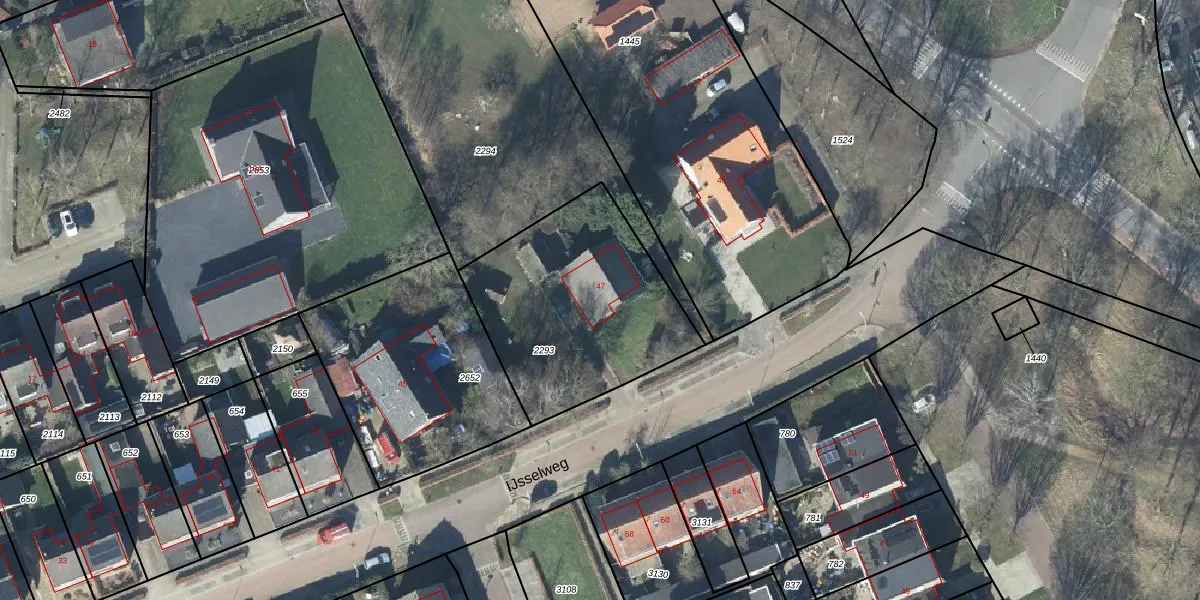 Het perceel waarop IJsselweg 47 staat heeft een oppervlakte van 904 m². Dit is een groot perceel. De perceeloppervlakte wordt geregistreerd door het Kadaster. Gedetailleerde informatie over de maten van dit perceel kunt u vinden in het rapport Kadastrale kaart met maatvoering van IJsselweg 47.