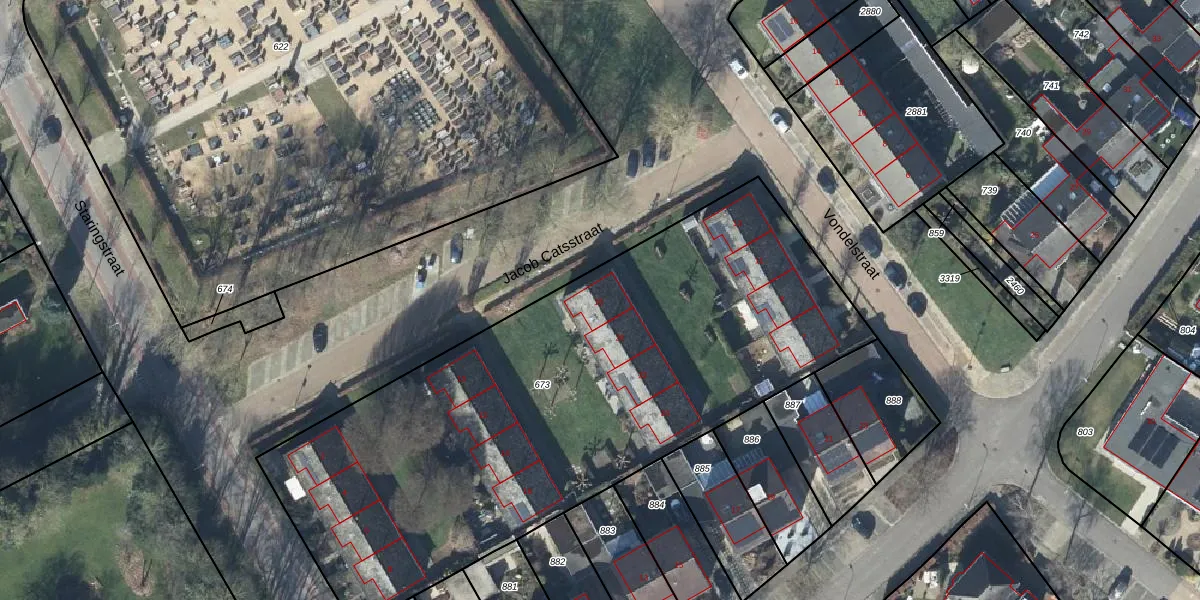 Het perceel waarop Jacob Catsstraat 18 staat heeft een oppervlakte van 3240 m². Dit is een zeer groot perceel. De perceeloppervlakte wordt geregistreerd door het Kadaster. Gedetailleerde informatie over de maten van dit perceel kunt u vinden in het rapport Kadastrale kaart met maatvoering van Jacob Catsstraat 18.