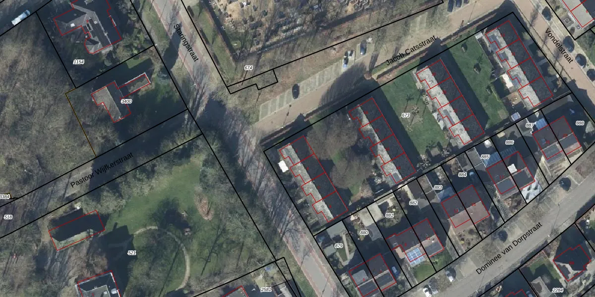 Het perceel waarop Jacob Catsstraat 2 staat heeft een oppervlakte van 3240 m². Dit is een zeer groot perceel. De perceeloppervlakte wordt geregistreerd door het Kadaster. Gedetailleerde informatie over de maten van dit perceel kunt u vinden in het rapport Kadastrale kaart met maatvoering van Jacob Catsstraat 2.