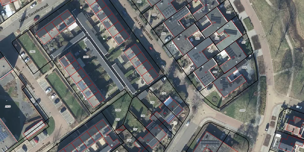 Het perceel waarop Jan Ligthartstraat 20 staat heeft een oppervlakte van 3845 m². Dit is een zeer groot perceel. De perceeloppervlakte wordt geregistreerd door het Kadaster. Gedetailleerde informatie over de maten van dit perceel kunt u vinden in het rapport Kadastrale kaart met maatvoering van Jan Ligthartstraat 20.