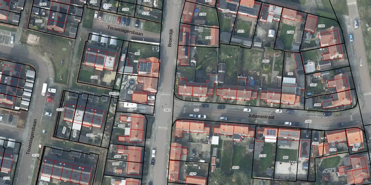 Het perceel waarop Julianastraat 1 staat heeft een oppervlakte van 2043 m². Dit is een zeer groot perceel. De perceeloppervlakte wordt geregistreerd door het Kadaster. Gedetailleerde informatie over de maten van dit perceel kunt u vinden in het rapport Kadastrale kaart met maatvoering van Julianastraat 1.