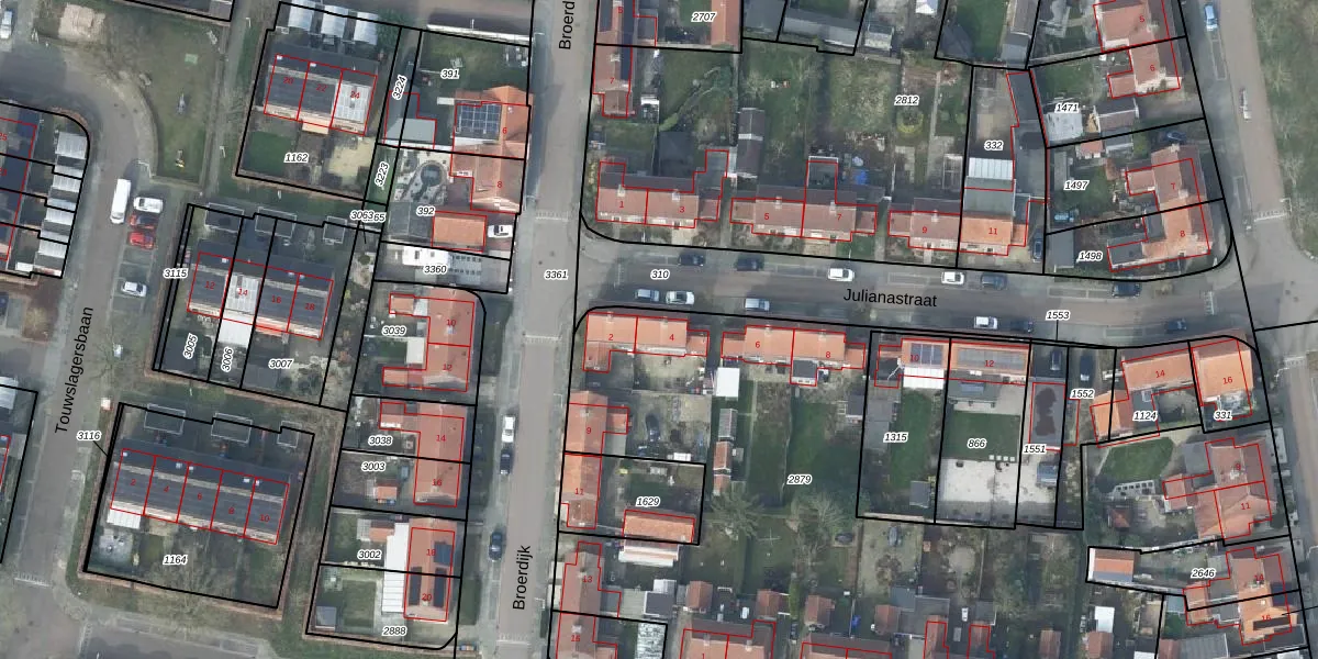Julianastraat 4 is gelegen op kadastraal perceel GDG00K2879. Deze kadastrale aanduiding is uniek en wordt gebruikt door het Kadaster om eigendomsrechten en andere zakelijke rechten vast te leggen. Het perceel maakt onderdeel uit van de kadastrale gemeente Gendringen.