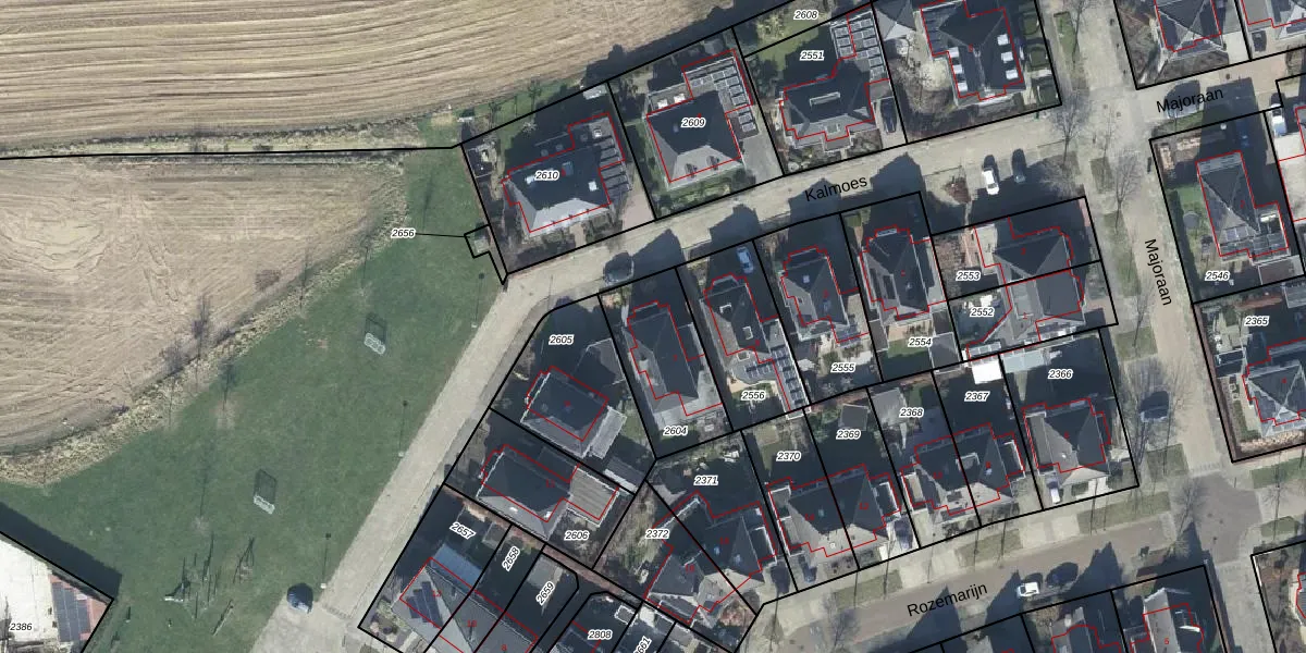 Het perceel waarop Kalmoes 7 staat heeft een oppervlakte van 340 m². Dit is een groot perceel. De perceeloppervlakte wordt geregistreerd door het Kadaster. Gedetailleerde informatie over de maten van dit perceel kunt u vinden in het rapport Kadastrale kaart met maatvoering van Kalmoes 7.