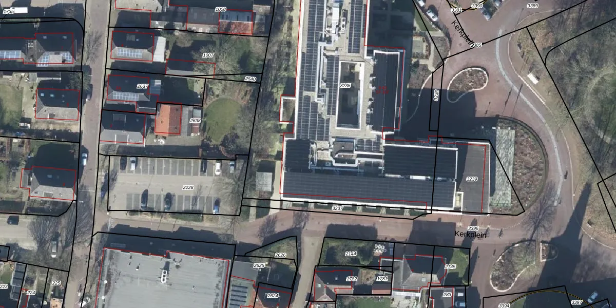 Het perceel waarop Kerkplein 43 staat heeft een oppervlakte van 4434 m². Dit is een zeer groot perceel. De perceeloppervlakte wordt geregistreerd door het Kadaster. Gedetailleerde informatie over de maten van dit perceel kunt u vinden in het rapport Kadastrale kaart met maatvoering van Kerkplein 43.