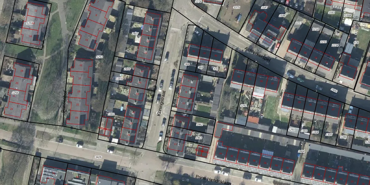 Het perceel waarop Koningstraat 9 staat heeft een oppervlakte van 4984 m². Dit is een zeer groot perceel. De perceeloppervlakte wordt geregistreerd door het Kadaster. Gedetailleerde informatie over de maten van dit perceel kunt u vinden in het rapport Kadastrale kaart met maatvoering van Koningstraat 9.