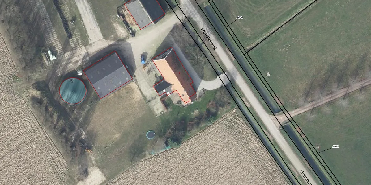 Het perceel waarop Munsterweg 2 staat heeft een oppervlakte van 20,0 ha. Dit is een zeer groot perceel. De perceeloppervlakte wordt geregistreerd door het Kadaster. Gedetailleerde informatie over de maten van dit perceel kunt u vinden in het rapport Kadastrale kaart met maatvoering van Munsterweg 2.